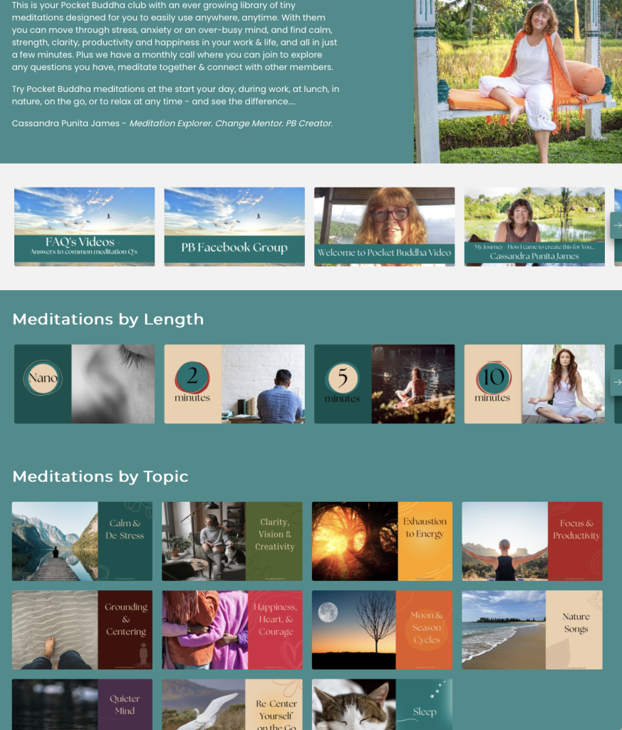 A sneak peak of just part of the new beautiful, user-friendly tiny meditation website for Pocket Buddha Club members.